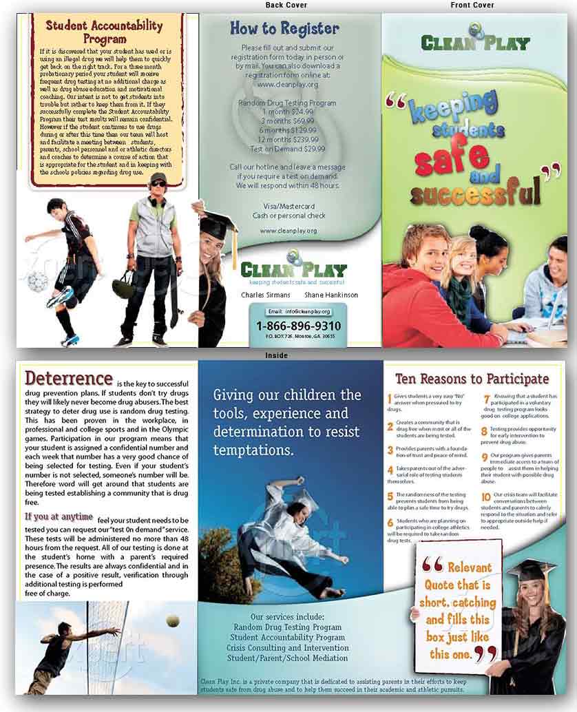 I've been working on this brochure for a family member that is starting this new company. It seems to me that it's missing that little extra 'pop' in the design, but I'm having trouble pinpointing just what should be done/changed. I'm still not happy with the color combinations on the front&back covers Please disregard the trim lines, and the stock photography hasn't been approved for purchase yet so they're still watermarked from Stock Expert. The clipping masks are also very rough.