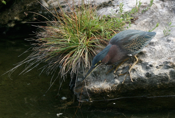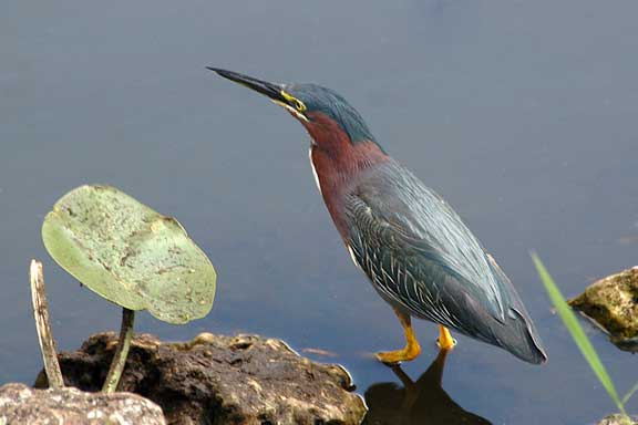 From the searches that I did on the web to identify this bird, I think it is the Green-back Heron or Green Heron. |