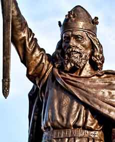 Hi Paul, I tried to replicate your idea on the image as posted but the resolution is just too low to show the technique so I’m sorry I cannot illustrate this with your image. I am assuming that your text is all prepared and ready to go. Firstly make a copy of the statue layer and drag it to the top of the layer stack. Make sure that it stays at the top throughout; particularly when we get to the ‘displacement bit’. Now de-saturate that top layer and give it a little Gaussian blur. How much will depend on the size of the image so you’ll have to work that out for yourself. You should be able to see reasonably fine detail but a little blurred. Now hide the layer by clicking on the ‘eye’ icon. Save the file as a psd file. Position the text where you would like it but do remember that it might be partially hidden by his cloak. Load the text as a selection and hide the text layer. Select the statue layer (not the blurred version!). Now hit Ctrl-J (CMD-J on a MAC). This will give you a new layer in the shape of your text but using the statue as the fill. You should not be able to see any change but your text layer is there – honest! Double click on this new text layer to bring up the blending options and select Bevel and Emboss. Select the ‘down’ option and with style, technique, depth, etc to your taste. Hit OK. Keep this layer active and go to filter>distort>displace. Now you will just have to experiment with settings start off by using the default of ‘10’ and hit OK. Photoshop will now ask you for a displacement map, so navigate to where you have saved this psd file and select that. What happens now is that Photoshop will look at the topmost layer in this file which, of course, is your blurred, de-saturated image of the statue; the layer doesn’t need to be visible. It will then move the pixels of your letters layer either up and left or down and right depending on the greyscale value of the particular pixel on the blurred image. The blurring smoothes out the tonal range and prevents sudden jumps with the pixels. Your text layer should now ‘conform to the folds of the cloth. That’s the basic technique; the rest will require a little experimentation on your part to get it right for this particular image. Hope this helps. Gordon _________________ Why is there only one body to investigate Monopolies ? |