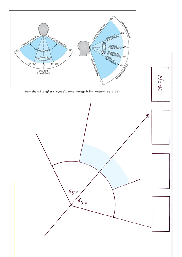 I have found this challenge particularly interesting and to see the different interpretations submitted by other others. At first, the concept seemed daunting to me and I freely admit to jumping in with both feet without really giving it any serious thought. So having watched with interest and pondered on this for a few days, I decided to experiment and started walking around rooms in the house to observe the way different pieces of furniture interacted with each other. For example, walking round the dining room table made other pieces move as well, but at a variety of different speeds depending on the distance between them. Also, the angles and perspective changed constantly, including visibility of objects on different planes, as is the case of the girder and roof apexes in Steves image. Standing in the corner of the room and stepping back at 45 degrees to see how the whole view changes was interesting and you may wish to have a go at this for yourselves, just for fun. Having just looked on the forum again, it is interesting that Michael made the comment, ‘were nonsense when seen through human eyes’ and I think this hits the nail nicely on the head. Normal binocular vision lets us see a field of view of about 130° combined however, the useful field of view referred to as ‘text recognition’ is only about 60°. As such, if you step back as Michael suggested originally, in line with the viewing angle referred to by Steve, then I think that it would be highly unlikely for the human eye to see the right-hand wall of the nearest Nook because this would be way towards the furthest edge of peripheral vision. Conversely, our reconstructions are crystal clear instead of being blurred out of all proportion. As curious humans we would naturally turn our heads to view the item we want to see. By looking around to the right and towards the Nook, the angle of the base and the fence behind would then become horizontal to us thereby changing the whole perspective and therefore the image content entirely. It would seem that what we try to create using theoretical simulation by following perspective lines, outside of our normal field of view, is totally different to what we would see in practice and therefore almost impossible to achieve. That said, this is far more relevant to objects nearest to us than those in the distance and therefore subjects nearer to the vanishing point are easier to manage and re-create. Simple sketch attached assuming a viewing angle of 40 degrees (best I could estimate). This challenge has been exceptionally educational, so many thanks Steve. ![]() |