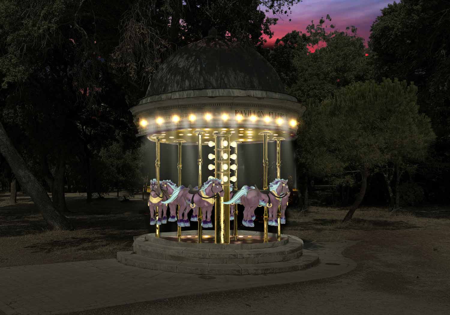 Splendid carousel Anna. I had never heard of Samhain. Had to look it up. Tired of the French coast our Pavilion has emigrated to America in search of excitement. Seduced by the glitz and glamour of Vegas, he has had a dome makeover and found a new home in the famous Caesar's Palace pool complex. This was supposed to be a simple quickie but, to my surprise, trying to get it to blend in was much harder than I anticipated. ![]() _________________ The subtlety and conviction of any Photoshop effect is invariably inversely proportional to the number of knobs on it ....... |